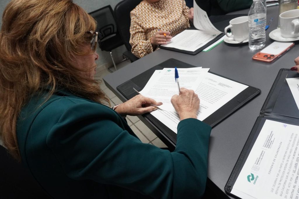 Firma del convenio de colaboración de la secretaria ejecutiva del SIPINNA BCS y CONALEP